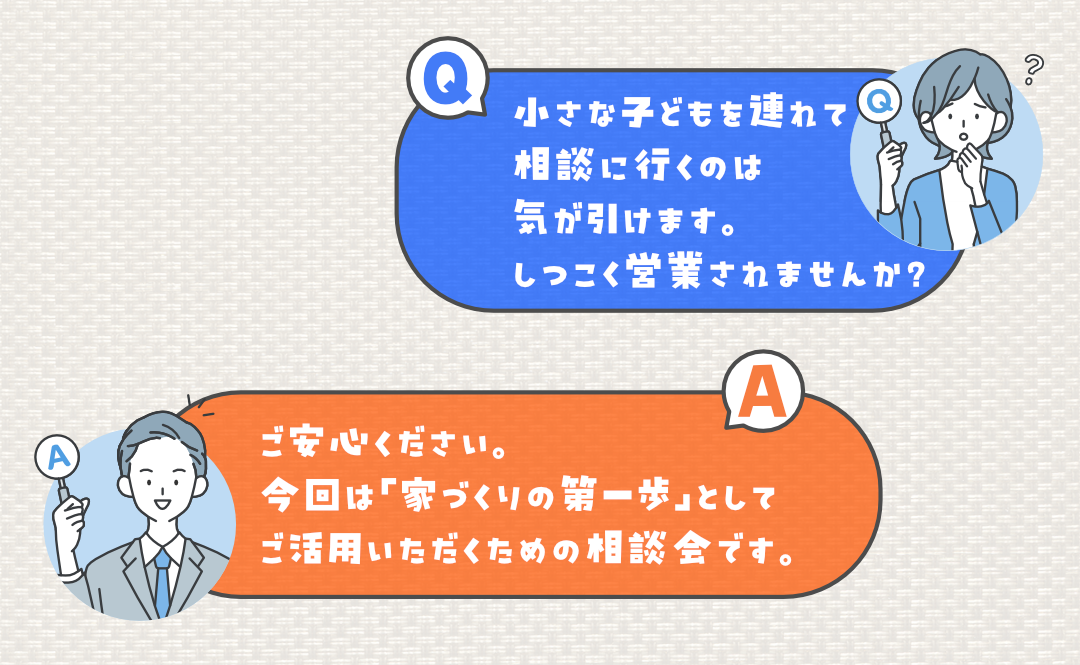 「家づくりの相談に行きたいけれど、ハードルが高い…」というパパ・ママがよく抱える疑問にお答えします。
