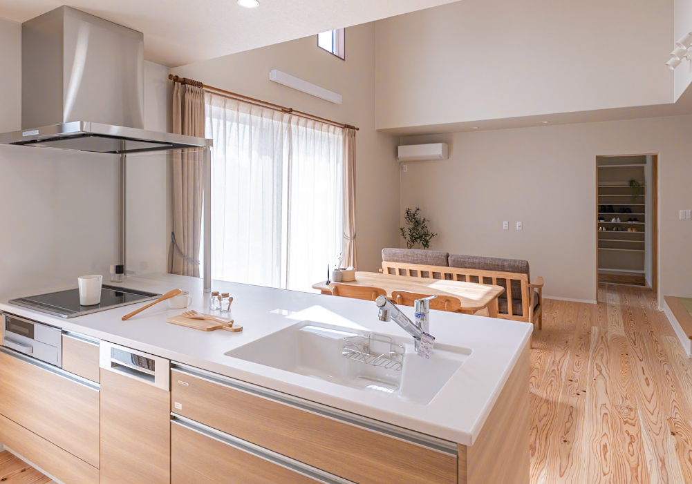 平屋ならではの自由な間取り設計に開放感をプラスした「いつでも家族を感じる空間」を実現した家。